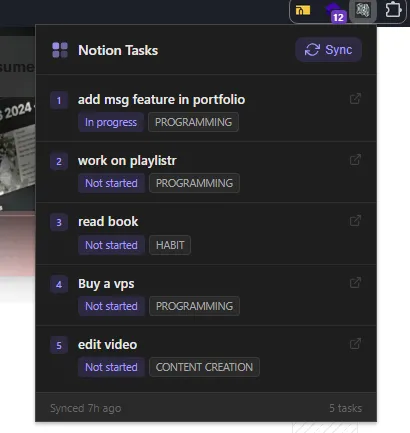 The system fetches live to-do data from Notion, displays it in a minimal interface inside the extension, and sends me task updates directly on Telegram.